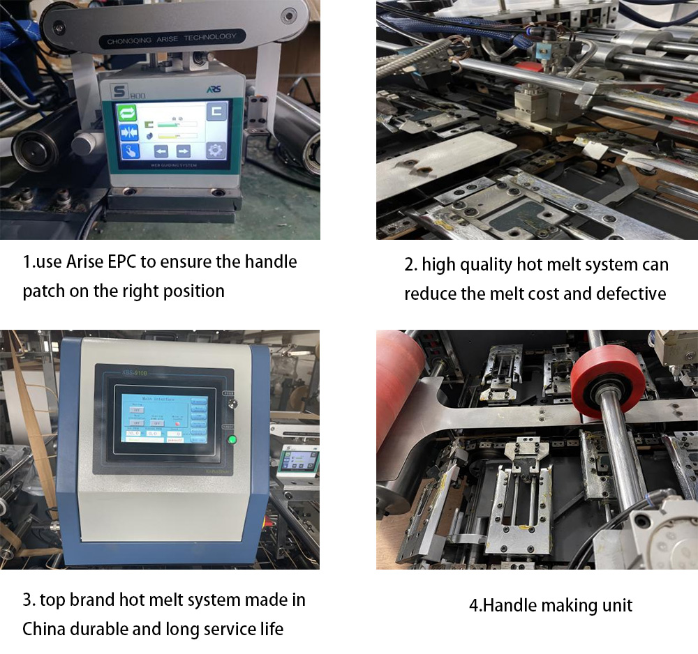 The machine is specially designed for supporting the production of eco-friendly paper bags, it can produce flat handle efficiently and past it to the bags by manual. This machine uses 4 rolls of narrow-width kraft paper as raw material, gradually formed by a flat rope mold transmission system to complete the production of flat ropes and flat handles to form a flat handle.
